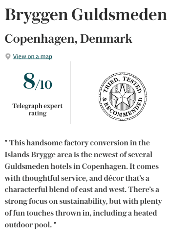 What’s hot? Everything about the interiors, fixtures and fittings, especially the amazing, deep baths that you won’t ever want to emerge from. We also rated the hangover-friendly breakfast times – it’s served until midday on weekends. Then there’s that peaceful, zen ambience that Copenhageners do so well.